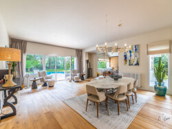 Dès l'entrée, la lumière naturelle s'invite généreusement sur l'intégralité du rez de chaussée avec ses superbes volumes en enfilade où nous trouvons une pièce de vie de 98m2 articulée autour d'un ilôt central.