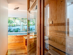 Deux chambres avec chacune une salle d'eau dont une suite parentale complètent ce premier niveau. En rez de chaussée, autour d'un patio central inondé de lumière, 2 chambres, une salle d'eau des toilettes et un espace détente composé d'un hammam, d'un sauna et d'une piscine intérieure ouverte sur l'extérieur.