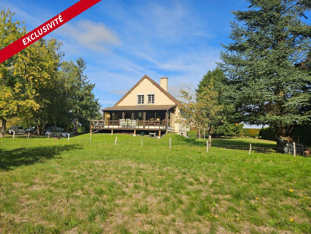 À l'extérieur, la propriété s'étend sur un terrain de 7167 m² divisé en deux parcelles encore constructible, offrant un jardin spacieux et agréable. Le pavillon sur sous-sol dispose d'un garage, d'une buanderie, et d'une cave, offrant ainsi un espace de stockage supplémentaire appréciable. La maison est équipée de volets assurant confort et sécurité aux résidents.