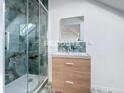 Il comprenant une cuisine ouverte sur une belle pièce de vie lumineuse, une chambre avec sa salle de douches attenante et des toilettes séparées.