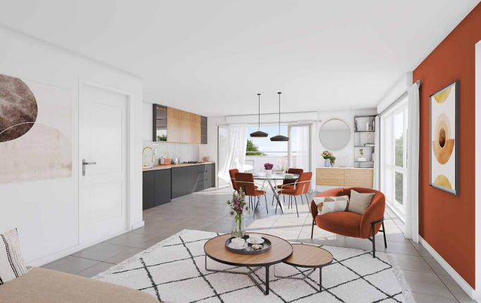 L'opération prend place à Ambilly, petite commune florissante à 10 kilomètres de Genève. Voisine immédiate d'Annemasse, Ambilly occupe une situation prisée à la frontière suisse. Elle séduit familles et actifs transfrontaliers attirés par les opportunités professionnelles du bassin lémanique, riche de 500 000 emplois. Cette commune de quelque 6 300 habitants offre toutes les commodités simplifiant le quotidien : commerces, marché, groupes scolaires, équipements sportifs et culturels. Elle tire avantage d'une excellente qualité de desserte : A40 et A411, bus, ligne 17 du tramway desservant Genève en 25 minutes, voie verte reliant Bonne à la métropole helvétique. S'y ajoute un atout supplémentaire côté mobilité : le Léman Express en gare d'Annemasse. Ambilly est, comme le revendique fièrement sa devise, la plus petite commune des 2 Savoies, mais pas des moindres. En attestent les grands projets d'aménagement qui s'y réalisent, à l'instar de l'ambitieux écoquartier de l'Étoile, à cheval sur Ambilly, Annemasse et Ville-la-Grand. Doté de boutiques, de bureaux et d'un pôle de formation supérieure, il soutient l'attractivité croissante du territoire. Émaillée d'espaces verts participant à son agréable qualité de vie, Ambilly profite d'un cadre naturel incomparable. La proximité du lac Léman, des massifs du Voiron et du Salève, ainsi que des stations de ski à 45 minutes de route font le rêve des amateurs de loisirs outdoor !