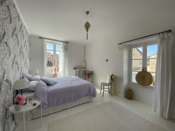 Cette adorable maison au charme fou est un havre de paix. Sans nuisance ni vis à vis, au milieu de son jardin clos de murs, elle se situe au coeur d'un bourg avec toutes commodités à pied. Le rez-de-chaussée accueille la pièce de vie avec dans son prolongement une chambre permettant de vivre de plain pied, la cuisine équipée séparée avec poêle à bois, cellier attenant, salle d'eau et WC. Le palier de l'étage dessert 2 chambres avec rangements, un bureau, une salle de bains avec WC. Grenier aménagé en surface utile. Enfin la grange aménagée sera parfaite pour recevoir en extérieur famille et amis. L'ensemble très lumineux et dans un état irréprochable. PIERRES DE CHARENTES Vivre en Province