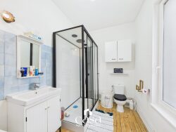 À l'étage, vous trouverez deux belles chambres ainsi qu'une salle d'eau avec WC.