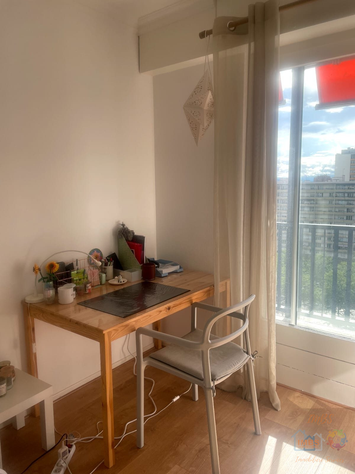 Le bien se compose d'une belle salle d'eau avec machine à laver et WC mais également d'un autre WC séparé, une cuisine entièrement équipée ouverte sur une grande pièce de vie et d'une chambre disponible.