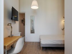 Terrasse extérieure ? La maison Rez-de-chaussée : 3 chambres avec salle d'eau et WC privatifs + WC commun 1er étage : 7 chambres avec salles d'eau et WC privatifs (dont 3 avec balcon) 2e et dernier étage : 4 chambres avec salles d'eau privatives + WC commun ?? Chambres disponibles (8) Chambre 2 RDC 12,8 m²? 475 HC / 545 CC Chambre 3 RDC 16,8 m²? 580 HC / 650 CC Chambre 6 1er étage 13,7 m²? 605 HC / 675 CC Chambre 7 1er étage 14 m²? 525 HC / 595 CC Chambre 9 1er étage 14,3 m²? 605 HC / 675 CC Chambre 10 1er étage 15,4 m²? 605 HC / 675 CC Chambre 11 2e étage 11,5 m²? 510 HC / 580 CC WC commun Chambre 14 2e étage 9 m²? 520 HC / 590 CC WC commun ? Toutes les chambres sont meublées (lit 140, bureau, dressing) et disposent d'une salle d'eau privative et d'une TV !