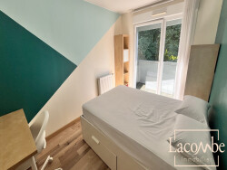 Une place se libère au sein de la colocation Rue Plaisance, rejoignez nos colocataires. Dans une copropriété sécurisée à proximité de toutes les commodités et d'une ligne de bus chrono, l'appartement de 120m2 entièrement équipé et meublé à neuf, se trouve au 2ème étage sans ascenseur. Il dispose d'une belle cuisine équipée (vaisselle, lave-vaisselle, frigo, plaque, four, micro-onde, congélateur, cafetière et théière) avec de nombreux rangements et son petit coin repas, d'un séjour (canapé, fauteuil, table basse, TV connectée, table de salle à manger et 6 chaises) donnant sur balcon au calme, d'une salle de bain avec machine à laver et sèche linge, d'une salle d'eau et de 2 toilettes séparés. Chaque chambre de la colocation est équipée d'une literie de bonne qualité avec couette et oreillers, d'un bureau avec chaise et d'un espace de rangement. Colocation avec bail individuel : 425 EUR hors charges + 70 EUR de charges comprenant eau, chauffage, électricité, abonnement internet fibre, 2 h par semaine de ménage pour les espaces partagés de l'appartement // Caution : 2 mois de loyer HC // Honoraires d'agence : 247,50 EUR par bail. Vous pouvez faire parvenir votre dossier ou toute demande de renseignements à Alexandra chez Lacombe immobilier. N'hésitez pas à nous contacter !