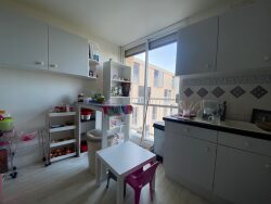 Il se compose d'une entrée avec 2 placards, d'une cuisine indépendante avec placards et hotte aspirante, d'un séjour avec double exposition donnant sur un balcon, d'un dégagement desservant 2 chambres, d'un dressing, d'une salle d'eau avec meuble vasque et douche et d'un wc indépendant.