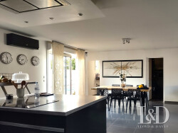 À l'extérieur, vous profiterez d'une vaste terrasse d'environ 90 m² orientée plein sud, parfaite pour vos repas d'été, ainsi que d'une piscine chauffée pour des baignades en toute saison.