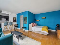 À quelques pas des Champs-Élysées, au sein d'un immeuble de standing parfaitement entretenu, découvrez ce grand studio/2pièces de 43 m² loi Carrez, situé au 3? étage avec ascenseur. Au calme absolu, ouvrant sur une vaste cour intérieure, cet appartement se compose d'une entrée desservant une spacieuse pièce de vie lumineuse avec cuisine ouverte à l'américaine. Dans un renfoncement astucieusement aménagé, un véritable coin nuit peut être facilement séparé par une cloison. Vous trouverez également un grand dressing ainsi qu'une salle de bains avec WC. L'ensemble est en parfait état, prêt à emménager. Une place de stationnement en sous-sol complète ce bien. Gardien à demeure