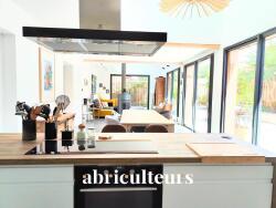 Cuisine ouverte entièrement équipée : four, induction, hotte, réfrigérateur & LV intégrés