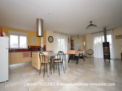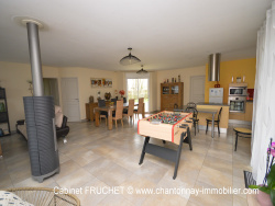 A 10 minutes de CHANTONNAY. Dans environnement paisible. Posez vos valises dans cette maison en ossature bois de plain-pied, de 140 m2 habitables, très fonctionnelle. Elle se compose comme suit : Cuisine aménagée et équipée ouverte sur une vaste pièce de vie très lumineuse (62 m2) avec poêle à bois, dégagement, bureau, 4 chambres, wc, 2 salles d'eau dont une avec wc, lingerie aménagée. Vaste double garage-atelier-cellier de 78m2, isolé, avec faux-grenier. Le tout sur un terrain attenant d'environ 1800 m2, avec abri de jardin et serre-bois. Maison en parfait état d'entretien, offrant de belles prestations : chauffage au sol + poêle à bois, aspiration centralisée, volets roulants électrique, tout à l'égout, forage, fibre... A visiter sans tarder ! Prix : 273 000 EUR dont 5% TTC d'honoraires agence, 260 000EUR net vendeur. Réf. annonce : 6568 Les informations sur les risques auxquels ce bien est exposé sont disponibles sur le site Géorisques : www.georisques.gouv.fr