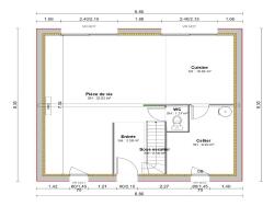 Vous disposerez d'une cuisine ouverte, d'une grande pièce de vie lumineuse avec une baie vitrée donnant sur votre jardin ainsi qu'une salle de bain et un cellier.