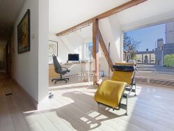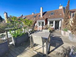 CONTADES-DUPLEX D'EXCEPTION AVEC 2 TERRASSES DE 50m2 CHACUNE. Au coeur du très recherché quartier des Contades, à deux pas du parc, découvrez ce duplex rare et lumineux niché au 5ème et dernier étage d'un immeuble de caractère. Ce bien d'exception, d'une superficie de 132m2carrez ( 184m2 au sol), entièrement rénové en 2015, séduit par ses volumes, son agencement fluide et son atmosphère élégante. Deux magnifiques terrasses paysagées sont de véritables pièces de vie à ciel ouvert offrant un cadre idéal pour profiter de moments privilégiés en toute intimité. Le premier niveau accueille un vaste séjour baigné de lumière avec un espace bureau ouvert sur la 1ère terrasse, une cuisine équipée de plain-pied sur la seconde terrasse, une salle à manger, une chambre avec dressing, une salle d'eau et un Wc indépendant. A l'étage, une chambre, un dressing ( pouvant aisément devenir une seconde chambre), un espace point d'eau et buanderie et un Wc. Une cave complète ce bien . Belles prestations, volets motorisés, chauffage gaz individuel . Un bien rare conjuguant charme, emplacement d'exception et extérieurs hors norme. Cet appartement offre un calme absolu, une véritable sensation de maison sur les toits.