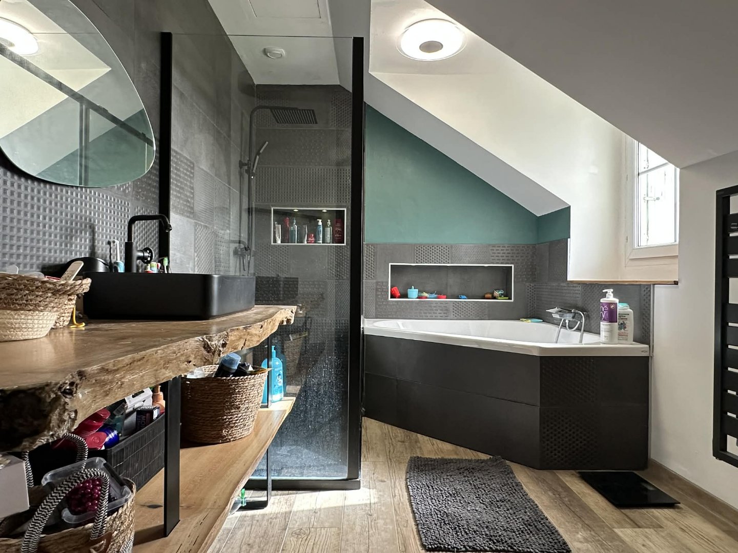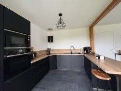 Dès l'entrée vous serez séduit par la vaste pièce de vie de 48m² baignée de lumière, comportant le salon séjour avec son accès terrasse, ainsi que la cuisine américaine aménagée et équipée. L'ensemble est doté d'un poêle à pellets.