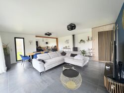 Rare sur secteur !! Plain-pied contemporain de 2021 - 102m² - 3 Chambres Découvrez cette maison contemporaine, non mitoyenne de 2021, située dans un cadre de vie agréable à seulement 20mn du centre d'Angers. Surface habitable d'environ 102m², cette propriété allie modernité et confort pour une vie quotidienne agréable de plain-pied total.