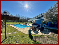 A découvrir cette très agréable maison de plain pied située à 7 km de Langon composée d'une entrée, un vaste séjour ouvert sur la cuisine avec cheminée et insert, un cellier, 3 grandes chambres dont une avec dressing (les 2 autres avec placards), une salle de bain, une salle d'eau, 2 WC. Grande terrasse couverte donnant sur la piscine, avec vue dégagée Joli jardin clôturé avec portail électrique. 2 abris de jardin. Quartier calme. Tout à l'égout - Fibre - Climatisation réversible - Maison très bien conçue à voir sans tarder !