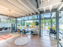 Avec ses beaux volumes et baignés de lumière, les espaces de vie orientés sud-ouest se succèdent et proposent une enfilade d'immenses ouvertures largement prolongées sur le terrasses.