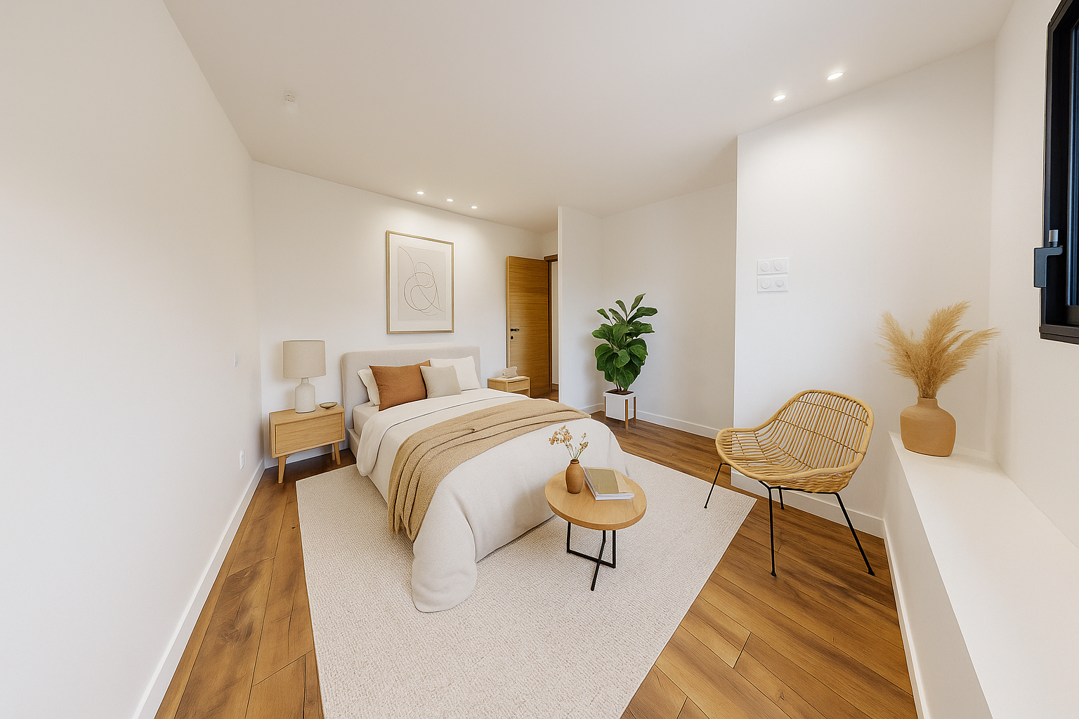 Une mezzanine spacieuse accessible depuis le séjour donne accès à une grande pièce mansardée (salle de jeux, chambre, home cinéma...) disposant de grands placards.