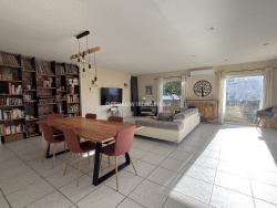 A CORNEILLA DEL VERCOL, Villa 3 faces T4 de plain pied d'environ 134 m2 sur parcelle de 400 m2 sans vis à vis, située dans un quartier résidentiel à proximités des commerces. Class énergétique : A. Composée d'une entrée, pièce à vivre de 59 m2 climatisée ouvrant sur une agréable terrasse couverte exposée sud ouest, cuisine américanine équipée, trois chambres avec de beaux volumes dont une suite parentale, une salle de bains mixte (baignoire et douche), deux wc, buanderie, garage isolé et motorisé de 20 m2. La maison est équipée d'une climatisation réversible (split séjour/ gaînable partie nuit), d'un chauffe-eau thermodynamique, de menuiseries en double vitrage et de volets roulets roulants électriques avec commande centrale apportant confort et performance énergétique Jardin arboré avec cabanon et forage. Emplacement de stationnement devant le garage. Le montant des dépenses annuelles d'énergie pour un usage standard est estimé entre 903 EUR et 1221 EUR abonnements compris (prix moyens des énergies indexés sur l'année 2022). La foncière est de 1362 EUR. Les informations sur les risques auxquels ce bien est exposé sont disponibles sur le site Géorisques : www.georisques.gouv.fr. Pour toute information supplémentaire, contactez-nous au 06 13 75 25 54. Notre agence, située à Corneilla-del-Vercol, est à votre écoute et disponible sur place.