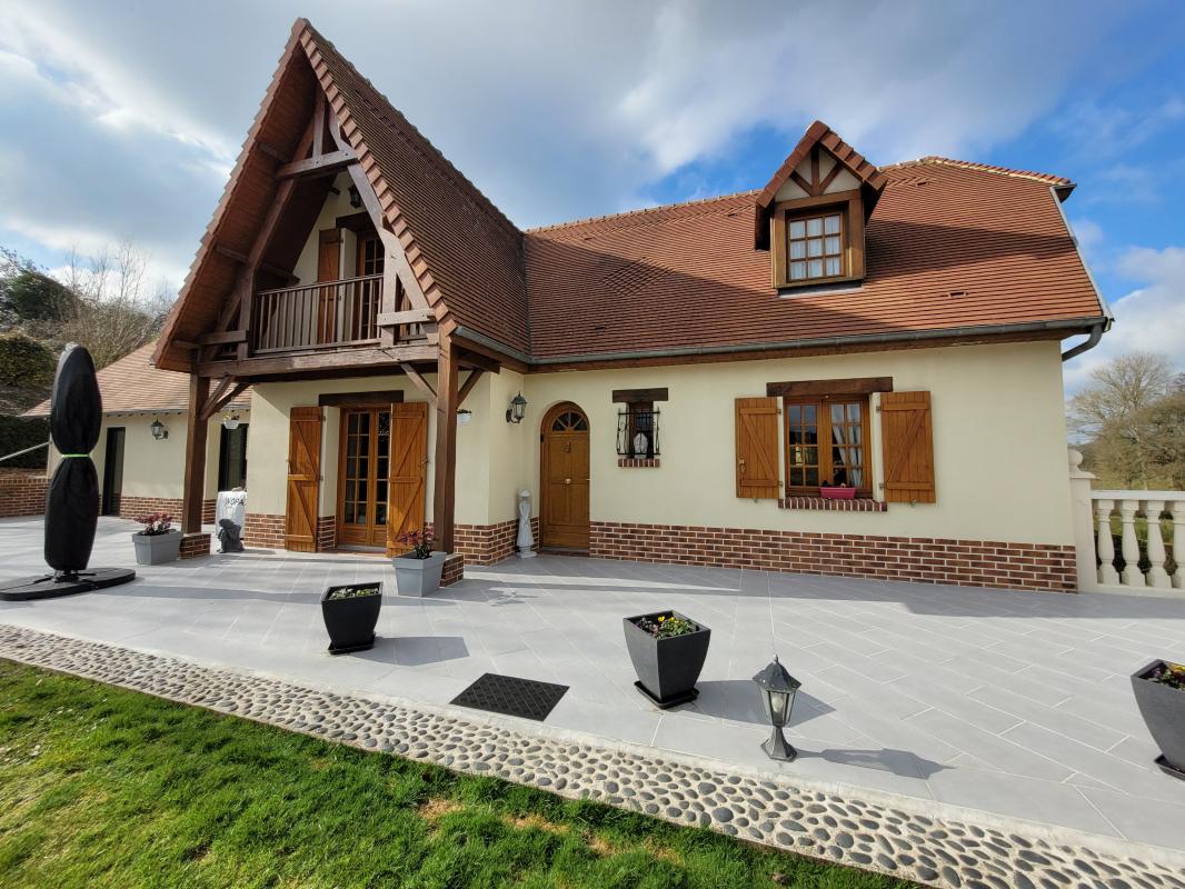 ANI BACQUEVILLE & GUILLAUME vous présentent « CORP DE FERME » Très belle propriété sur la commune d'Esclavelles à seulement 10 mins de Neufchâtel Longère de 158 m²comprenant une entrée sur cuisine aménagée , un séjour salon de 35 m² avec insert bois , trois chambres , un bureau , une chaufferie , un wc indépendant, une salle de bains .