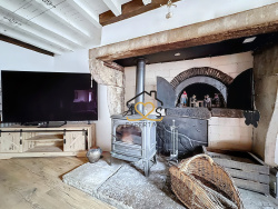 Salon / séjour 57 m2 avec cheminée et ancien four à bois (possibilité de le remettre en service), nombreux rangements Salle à manger 15 m2 avec accès terrasse et jardin Cuisine 13,30 m2 aménagée et équipée (hors réfrigérateur), sol en travertin Véranda 16,55 m2 Chambre 14,40 m2 avec dressing Bureau 8,35 m2 Salle de bain 6 m2 double vasque, et baignoire sabot WC indépendant Chaufferie / buanderie,