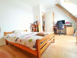 Au rez-de-chaussée, vous découvrirez une spacieuse entrée qui dessert une première chambre ou bureau, une salle d'eau, un wc, une cuisine exposée sud avec une cheminée ouverte avec un poêle à bois et une entrée directe par l'extérieur. Le salon avec accès cuisine vous propose une superficie de 44 m² avec un bel escalier massif qui vous mènera à l'étage.