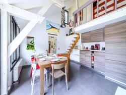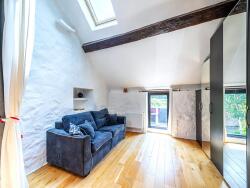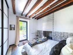 Vous arriverez par la magnifique cour pavée qui créera, sans en douter le premier coup de coeur. L'espace séjour/salon cathédrale, revisité par l'architecte Jean Poyeton, possède une acoustique idéale. La cheminée et l'escalier participe au charme de cette pièce