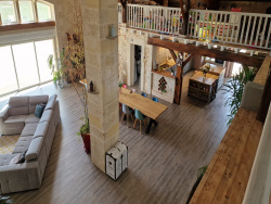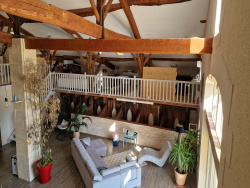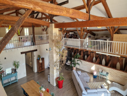 Campagne Marmandaise, 1h de Bordeaux, 3.5h de Paris, 2h Toulouse, magnifique rénovation pour ce corps de ferme de 450m2 habitable. Une pièce de vie centrale de 145m2 avec cuisine ouverte et entièrement équipée, surplombée par une mezzanine sur 3 cotés (possibilité de créer des chambres supplémentaires grâce à de la hauteur et à des ouvertures existantes), deux coins nuit distincts composé de : 1 suite avec chambre, dressing, salle d'eau et wc. 1 Espace avec 2 chambres, 1 salle de bain, 1 salle d'eau et 2 dressings. 1 grand jacuzzi en interieur de 4.5m X 2.3m avec 1 coin douche. Chauffage plancher chauffant avec pompe à chaleur pilotable à distance en rez-de-chausséee et climatisation reversible pour les mezzanines. LA RENOVATION COMPLETE DATE DE 2019 classe énergie C Réf : Conatct Carole : 06 75 71 65 74 Coté technique une grande buanderie avec accès direct depuis l'abri voiture double. un jardin paysagé de 4464m2 entierement clos avec un puits.