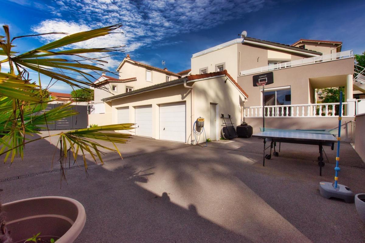 À Saint-Chamond, sur les hauteurs aux portes du Parc du Pilat, découvrez cette superbe propriété en pierre de 350 m², entièrement rénovée en 2022. Elle offre une vue imprenable sur la vallée du Gier et bénéficie d'un emplacement idéal, à seulement 5 minutes des commerces, des établissements scolaires et des accès autoroutiers. Parfaite pour accueillir une grande famille, elle se compose de 7 chambres (dont 3 actuellement aménagées en chambres d'hôtes), d'une spacieuse pièce de vie de 70 m² avec cuisine équipée et salon lumineux ouvrant sur une terrasse panoramique de 80 m², ainsi que de 6 salles de bain et 7 WC. Un espace bien-être unique de 84 m², creusé dans la roche, comprend un jacuzzi, un sauna et une salle de massage. Une salle de restauration de 60 m², une cour intérieure de 300 m² avec garage, ainsi qu'un terrain clos de 1 600 m² avec piscine, terrain de pétanque, étang privé et trois chalets de stockage complètent l'ensemble. Vous trouverez également un atelier de 18 m² et un parking privé pouvant accueillir 5 véhicules. Côté confort, la maison bénéficie d'équipements modernes et performants : climatisation, isolation extérieure, triple vitrage, volets roulants, toiture récente, pompe à chaleur, chaudière à granulés, cheminée et mini-station d'épuration.