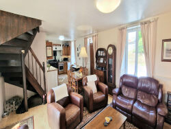CÔTES D'ARMOR Prés de Plemet, La Cheze Ne manquez pas cette belle maison, confortable et joliment présentée avec style. *visite virtuelle disponible* Classe énergétique D ! Aucun voisin immédiat. Idéale pour ceux qui souhaitent passer leurs soirées sur la superbe terrasse surélevée, exposée sud-ouest et de style méditerranéen, à siroter du vin et à observer le vol des oiseaux. La maison comprend un séjour-cuisine ouvert avec poêle à bois et cuisinière, une buanderie et des toilettes au rez-de-chaussée. Au premier étage, deux chambres doubles, une troisième chambre/bureau et une salle d'eau. Un grand sous-sol, idéal pour le rangement et l'atelier, pourrait également être aménagé en logement supplémentaire grâce à son entrée latérale. L'atelier se trouve sur un terrain gazonné juste en face, visible des passants si une publicité est utile. De nombreuses places de stationnement sont disponibles de chaque côté des parcelles, idéales pour la famille, les invités et les professionnels, et idéales pour les grands camping-cars ! Accès facile à de nombreux villages avec boulangeries, petits commerces, restaurants, écoles, centres médicaux, et à seulement 14 minutes de Loudéac, 10 minutes de Plémet et 20 minutes de la belle ville de Josselin avec son château et le canal de Nantes à Brest. Visitez-la sans tarder ! Elle est prête à emménager et profitez de l'intérieur et de l'extérieur dès maintenant ! (4.99 % honoraires TTC à la charge de l'acquéreur.) Kim GARDNER (EI) Agent Commercial - Numéro RSAC : 885 373 431 - SAINT BRIEUC.