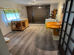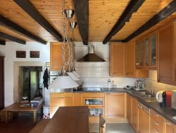 En entrant, vous arrivez dans un hall spacieux avec un escalier menant à l'étage supérieur. Tout droit, un petit couloir avec des placards mène à la salle d'eau, équipée d'un WC, d'un double vasques, d'une douche à l'italienne et d'un raccordement pour une machine à laver. Ce couloir dispose d'une porte donnant sur l'arrière de la maison et mène à un espace de rangement. À gauche du hall se trouve la cuisine ouverte avec coin repas. La cuisine est équipée d'un lave-vaisselle encastré, de plaques électriques et d'un four. La salle à manger dispose de portes-fenêtres donnant sur l'avant de la maison et d'une terrasse carrelée. À côté, vous trouverez le salon, également doté de portes-fenêtres donnant sur la terrasse à l'avant, et donnant accès à une pièce supplémentaire qui sert actuellement d'espace de rangement. Une ouverture a été créée entre le salon et la salle à manger, dans laquelle un poêle à bois double face a été installé, chauffant efficacement les deux pièces. La maison conserve de nombreux détails chaleureux tels que des poutres apparentes, une cheminée authentique, des tomettes et des carreaux de sol d'origine. À l'étage supérieur, vous arrivez sur un grand palier. À gauche se trouve la première chambre accessible par une petite marche, une salle d'eau privative avec double vasques, toilettes et cabine de douche. Le palier mène à un petit couloir lumineux qui dessert trois autres chambres, dont la dernière est très spacieuse. Sur le côté gauche de la maison se trouve une véranda ouverte surélevée offrant une vue magnifique sur le terrain privé. Sur le côté droit se trouve une petite grange servant d'espace de rangement. La maison est située au bout d'un chemin tranquille et est entourée d'environ 5 hectares de terrain, en partie prairie et en partie forêt, idéal pour ceux qui souhaitent couper leur propre bois de chauffage. Le terrain comprend également une grange qui peut être utilisée pour le matériel de jardinage ou le stockage. Le rez-de-chaussée est chauffé au bois, les autres pièces sont chauffées avec des radiateurs électriques. Les fenêtres sont à simple vitrage. L'ensemble de la maison est en bon état d'entretien. Une maison charmante dans un cadre verdoyant et paisible, entourée de son propre terrain -- parfaite pour les amoureux de la nature ou ceux qui recherchent l'intimité et l'espace dans la campagne française. Ref : 101809 Prix : 164.300 EUR HAI NoRSAC : 909 743 957 N'hésiter pas à nous contacter, langues parlées : Français , Anglais, Néerlandais et Allemand
