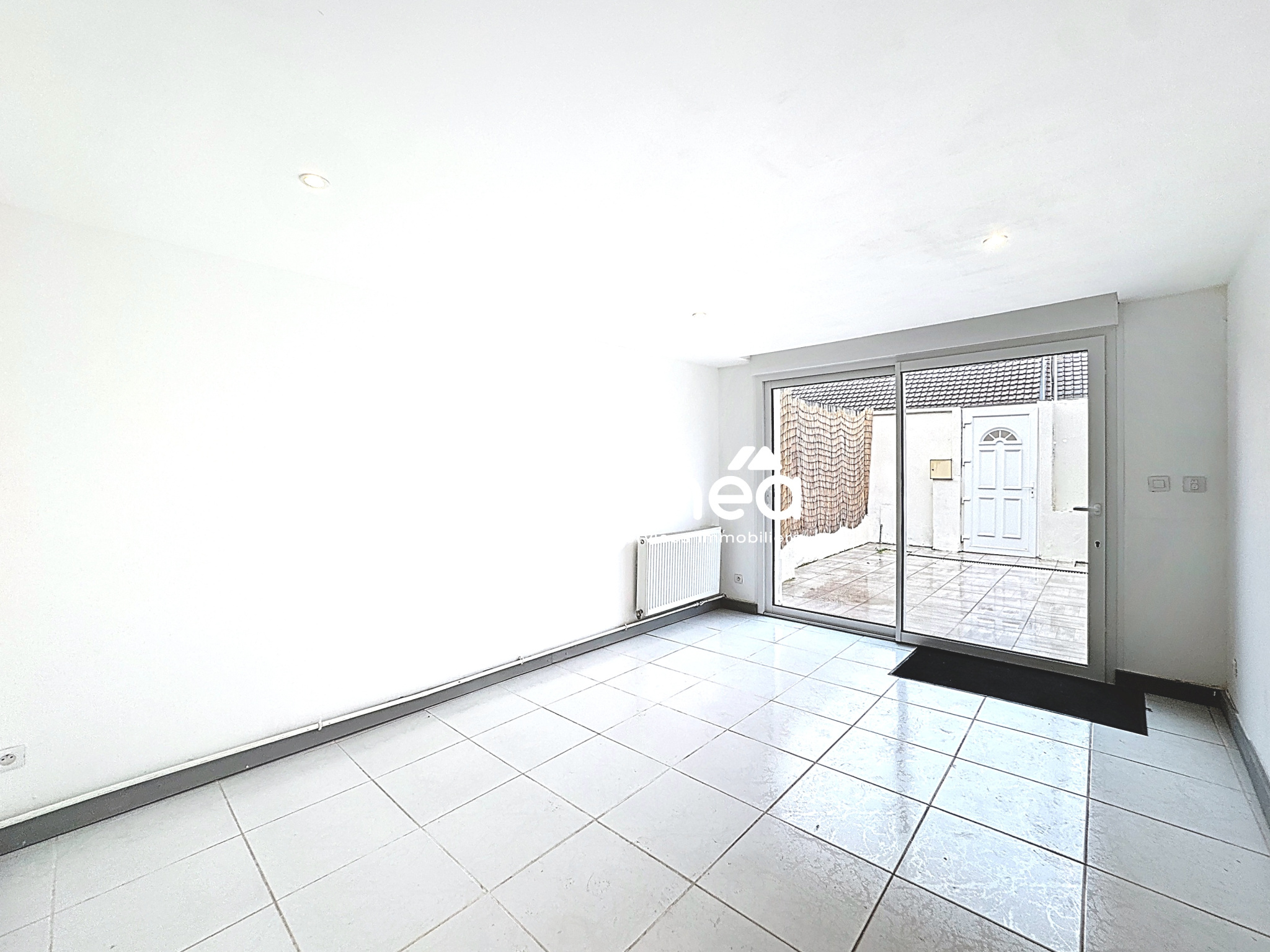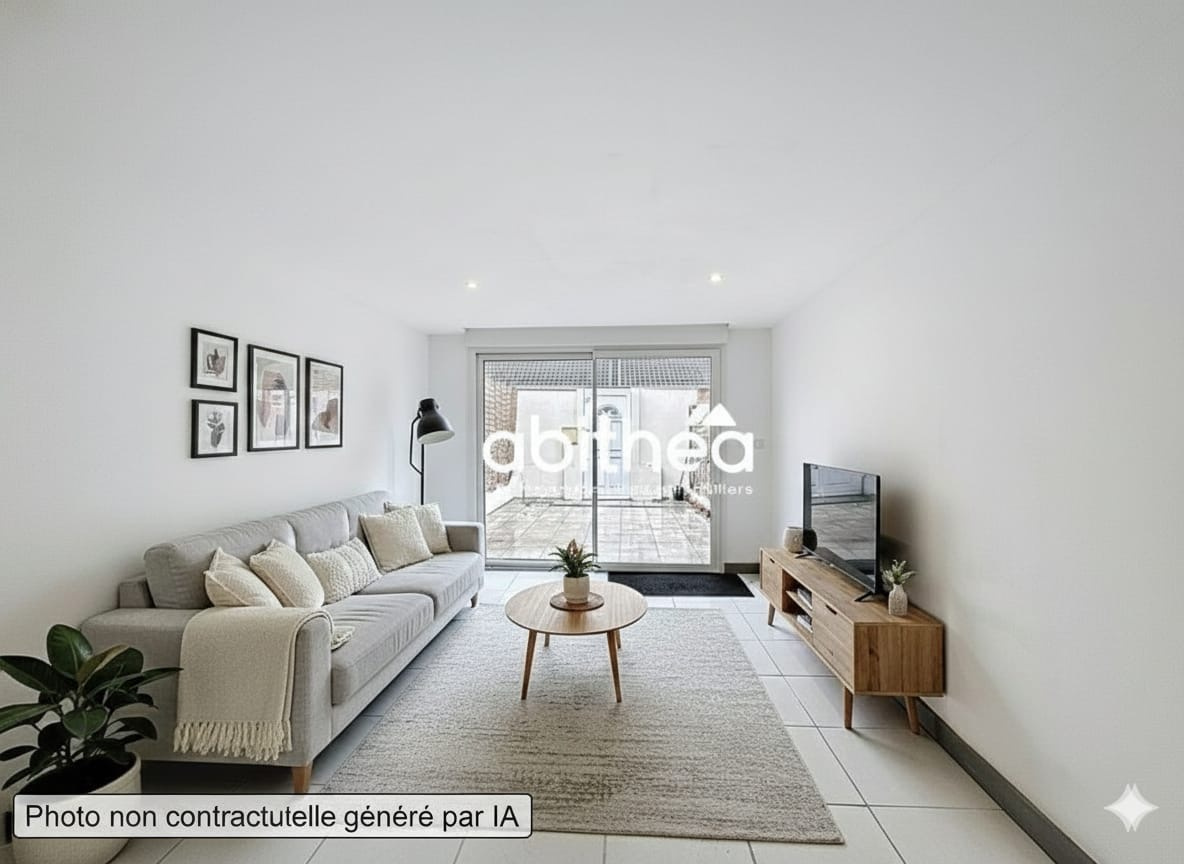 COULOGNE, RUE DE VERDUN, EXCLUSIVITE, MAISON DE VILLE SEMI-MITOYENNE comprenant au rez-de-chaussée : entrée, salon, salle à manger, cuisine, salle d'eau avec WC. A l'étage : palier, 2 chambres. COUR (10 m²) exposée SUD et dépendance (13 m²). PREVOIR TRAVAUX.