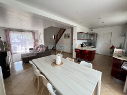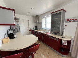 Pavillon contemporain de toute beauté comprenant en rdc : un salon chaleureux traversant avec son poêle à bois et sa cuisine ouverte avec accès sur une grande terrasse extérieur et un jardin verdoyant, une chambre et des wc. A l'étage, trois chambres optimisées et une sdb magnifique en bois exotique comprenant baignoire et douche ainsi que des wc séparés.
