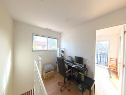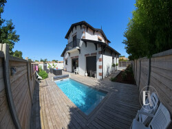 Maison contemporaine avec piscine Gujan-Mestras, proche centre ville. Dans un secteur recherché et paisible, découvrez cette superbe maison contemporaine construite en 2021 (normes RT 2012), offrant environ 132 m² habitables sur une parcelle paysagée et arborée de 580 m² environ. Elle dispose d'une piscine, d'un garage indépendant et de prestations haut de gamme. Vous serez séduit dès l'entrée par un hall indépendant avec grand placard aménagé. La pièce de vie de plus de 50 m², baignée de lumière grâce à sa baie vitrée à galandage, accueille une cuisine ouverte entièrement aménagée, un espace salon et une salle à manger, donnant sur la terrasse avec piscine. Le rez-de-chaussée comprend également deux chambres avec placards, une salle d'eau avec WC et un WC indépendant avec lave-mains. À l'étage, un palier pouvant être aménagé en bureau dessert deux chambres supplémentaires, chacune avec leur propre point d'eau, ainsi qu'un troisième WC. À l'extérieur, vous profiterez d'une belle terrasse en bois, d'une piscine, d'un local piscine et d'un garage indépendant. Cette maison bénéficie de prestations de qualité : chauffage gainable par pompe à chaleur, domotique... L'environnement est idéal, vous pouvez poser vos valises. Contactez moi pour plus d'informations ou organiser une visite