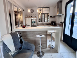 COUP DE COEUR, POSEZ-VOS VALISES! SOISSONS: idéalement située à seulement 15 minutes à pied du centre-ville, et à 15 minutes à pied de la gare dans un environnement calme et à proximité de toutes les commodités, cette propriété habitable de plain-pied de 173m2 se compose d'une entrée accueillante et spacieuse avec placards, un espace de vie ouvert de plus 60 m2 avec un poêle à bois orientable, une cuisine ouverte totalement équipée, un espace nuit comprenant: wc, 3 chambres (dont une qui est actuellement utilisé comme dressing, et une autre comme bureau disposant d'un accès indépendant: idéal pour les professions libérales), salle de bains avec double vasques, et une partie buanderie chaufferie, à l'étage: une vaste pièce palière baignée de lumière de plus de 40m2, 2 chambres (une de plus de 18m2 et une de d'environ 9m2), une salle d'eau avec wc. Vous serez séduit par ses volumes généreux, son agencement parfaitement étudié, et ses nombreuses ouvertures qui la rendent extrémement lumineuse et agréable à vivre. Côté extérieur: double terrasse (total d'environ 50m2) un car-port 2 véhicules, un garage servant de stockage, et un appentis pour le bois, Terrain entièrement clos et sans vis-à-vis de 1345m2.