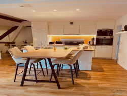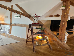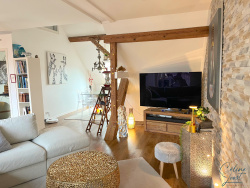 Vous êtes à la recherche d'un bien atypique, lumineux, avec du cachet et en excellent état ? Alors ce bien est probablement fait pour vous ! Réel COUP DE COEUR pour ce magnifique 5 pièces, type LOFT ! Situé au 2e et dernier étage d'une ancienne dépendance réhabilitée en 2016, il offre une surface de 103 m2 habitables et 149 m2 au sol. Aménagé en DUPLEX, vous trouverez : Une entrée avec un placard aménagé, une cuisine équipée ouverte sur un bel espace de vie donnant accès à une terrasse tropézienne exposée Sud / Ouest, deux chambres, une salle de bains avec WC et une buanderie/cellier. A l'étage supérieur, vous trouverez une belle chambre sous pignon, avec un 'filet - mezzanine' pour un espace lecture ou détente cosy ! Une cave fermée de 5 m2 (avec prise et point lumineux) et deux places de stationnement complètent ce bien. Petite copropriété comprenant uniquement 6 logements (occupés par les propriétaires), avec faibles charges (syndic bénévole). Bien UNIQUE et RARE à la vente ! Prestations : Plancher chauffant basse température, baie vitrée en triple vitrage, volets motorisés. Accès / commodités : A 5 mn en voiture de Colmar et de l'autoroute A35, Commune desservie par la ligne trace et la ligne transfrontalière, Ecole maternelle et élémentaire (avec section bilingue) Boulangerie / patisserie à quelques minutes à pied.