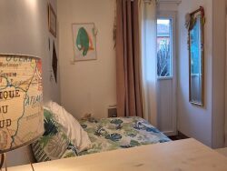 A l'étage: - le palier dessert une zone de travail (petit bureau) - une chambre - une salle d'eau avec WC - une pièce traversante pouvant être utilisée comme chambre d'appoint ou chambre d'adolescent avec un espace nuit en mezzanine