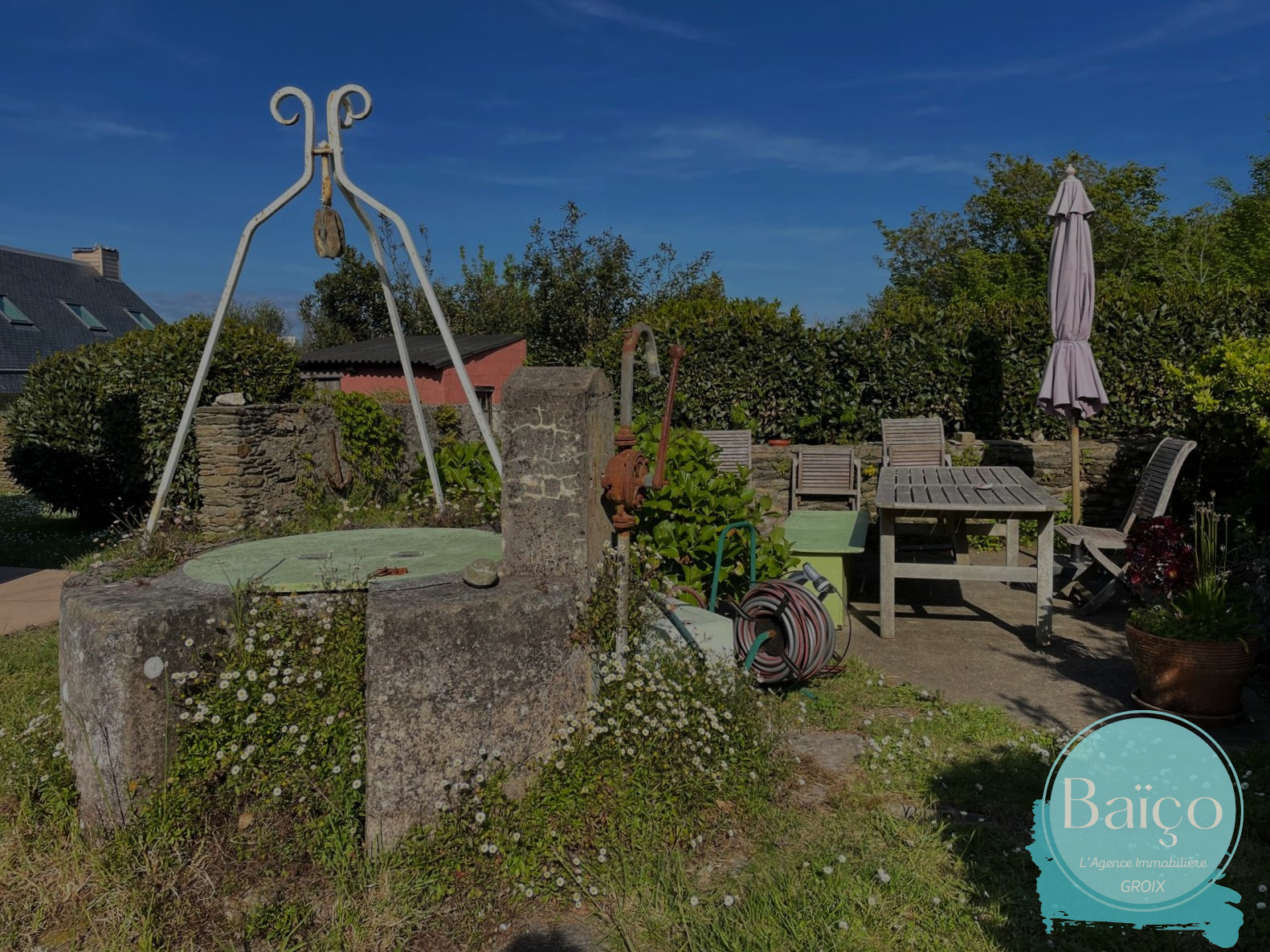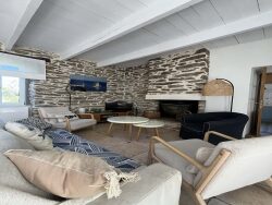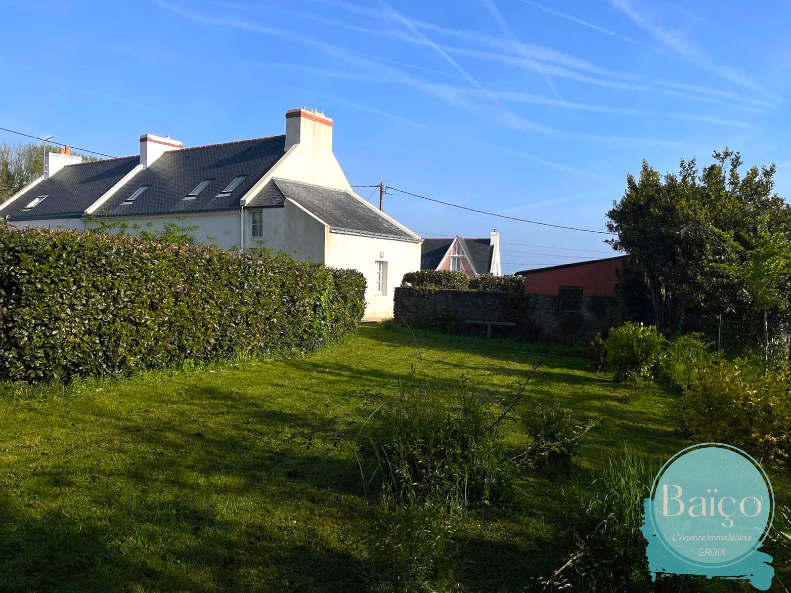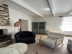 Au village de Lomener, maison de charme offrant au RDC un séjour salon avec cheminée, cuisine aménagée et équipée, dégagement avec wc/buanderie. Au 1er étage : 3 chambres, salle de douches avec wc. Au 2ème étage : une chambre avec salle de bains wc, une petite pièce. Jardin clos de murs. Le DPE est antérieur à la pose des huissieries en double vitrage et de la pose de l'insert dans la cheminée.