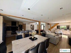 REF 2562 / L'agence immobilière MAR'IMMO LISA vous propose à la vente située sur la charmante commune de Lamanon, cette superbe villa contemporaine de 125 m² qui séduira par ses prestations modernes, ses volumes généreux et son cadre de vie privilégié. Dès l'entrée, vous découvrez une magnifique pièce de vie de plus de 60 m², baignée de lumière, comprenant un séjour, une salle à manger et une cuisine entièrement aménagée et équipée. Cet espace convivial s'ouvre sur l'extérieur, offrant une parfaite harmonie entre intérieur et jardin. La maison propose 3 chambres, dont une belle suite parentale avec dressing et salle d'eau en rez-de-chaussée, idéale pour un confort de vie optimal. À l'étage, deux chambres supplémentaires ainsi qu'une seconde salle d'eau viennent compléter l'espace nuit. La quatrième chambre transformée en dressing permettra aux familles nombreuses de s'y sentir à l'aise.