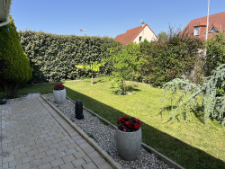 Un quartier résidentiel, un pavillon individuel impeccable, une pièce de vie salon/séjour/cuisine équipée d'environ 52m2 avec cheminée, 3 grandes chambres dont 1 au rez de chaussée, un garage séparé, une belle terrasse en bois, un jardin clos d'environ 800m2 avec 2 abris bois