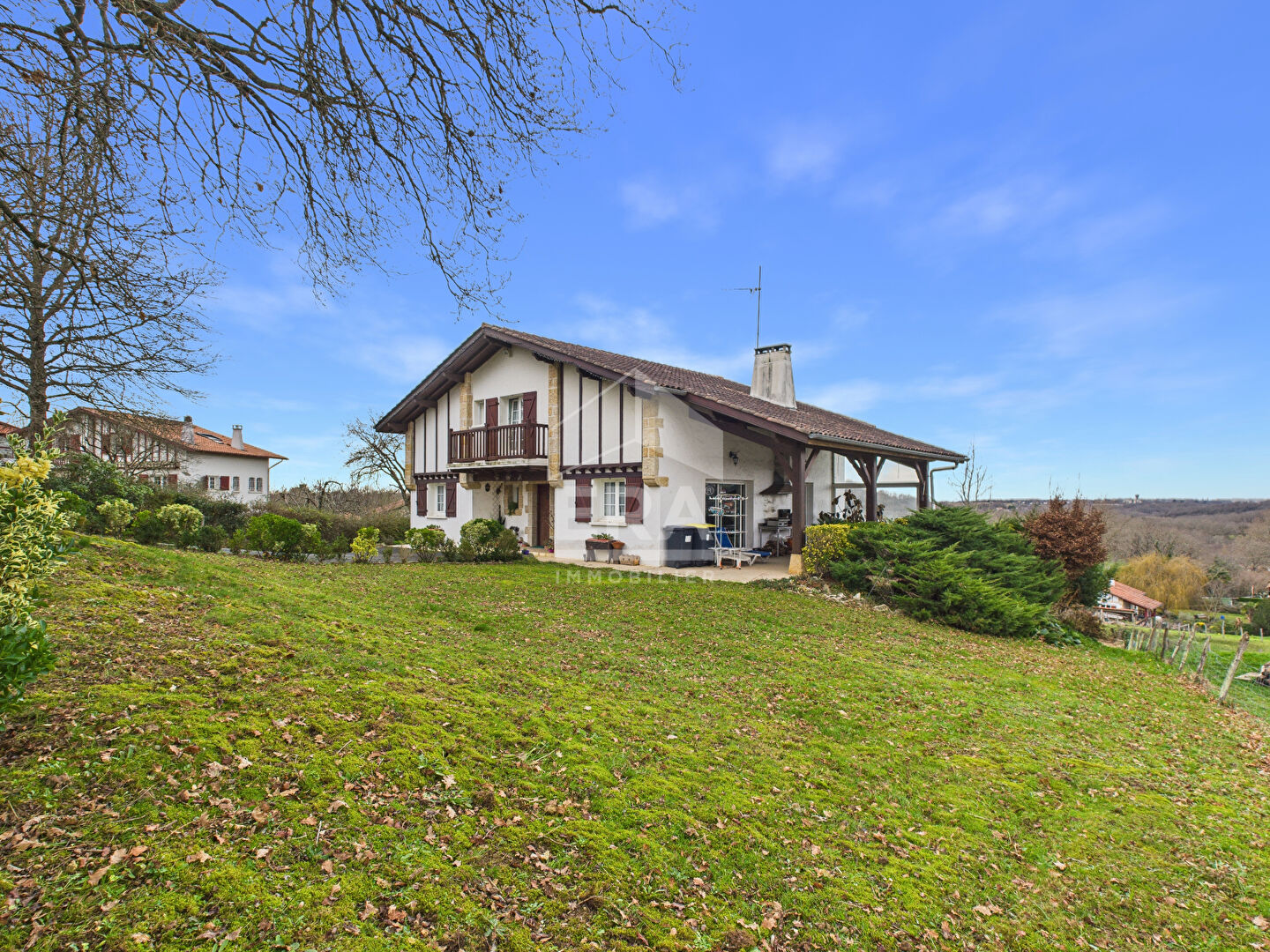 A 15 mn de Saint Dominique, 10 mn de Quartier Libre, 10 mn de Serres-Castet, 10 mn de l'aéroport, venez découvrir dans un environnement enchanteur et paisible, sans vis à vis, mais non isolée, cette superbe maison d'architecte avec matériaux de qualité d' environ 260 m2 habitables sur sous-sol total avec cave, le tout sur un magnifique terrain arboré de presque 12 000 m2 avec une partie boisée. Baignée de lumière par son exposition plein sud, cette belle propriété vous séduira par sa vue dégagée et partielle sur les Pyrénées, ses agréables terrasses dont une couverte avec barbecue, et l'ambiance de quiétude qui en découle. Elle se compose d'une grande pièce de vie avec insert et baie à galandage donnant sur terrasse plein sud de + de 90 m2, d'une grande cuisine dinatoire avec cheminée béarnaise donnant sur terrasse couverte, de 5 chambres dont une suite parentale, un bureau, 2 salles d'eau, cellier. Côté pratique, la propriété dispose d'une dépendance d'environ 48m2 carrelée permettant de garer un camping car, voitures, ou d'être aménagée en appartement pour rapport locatif ou autre. Une propriété rare, idéale pour ceux qui rêvent de nature, de calme, et d'un magnifique panorama à proximité de tout !!!! (6.00 % honoraires TTC à la charge de l'acquéreur.) Geraldine MANZANO (EI) Agent Commercial - Numéro RSAC : ADC 6402 2024 000 000 046 - PAU.