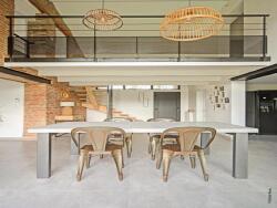 Effet WOW garanti par la hauteur sous plafond vertigineuse et les grandes baies vitrées XXL qui inondent la pièce de lumière.
