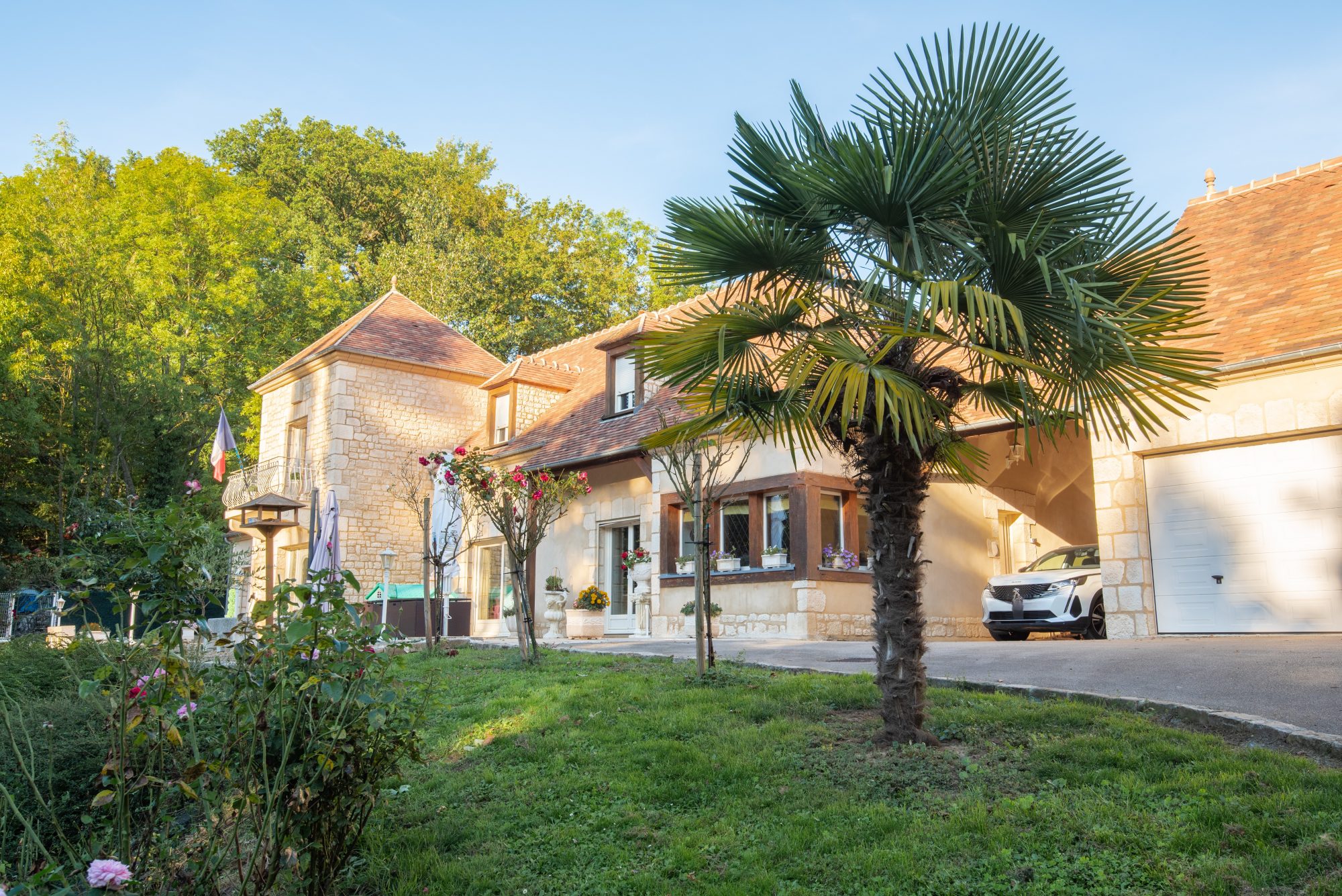 L'extérieur propose plusieurs terrasses intimistes, un espace détente autour de la piscine, ainsi qu'une serre pour les amateurs de jardinage.