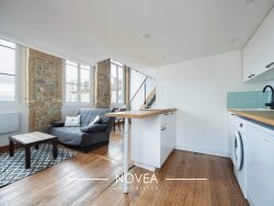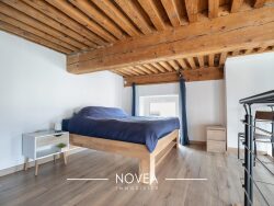 Au 4? et dernier étage, sans ascenseur, il offre un vaste séjour de 20 m² baigné de lumière grâce à trois grandes fenêtres orientées Est, avec une hauteur sous plafond remarquable de 3,95 m. Une cuisine ouverte, moderne et équipée, complète cet espace de vie chaleureux. Une salle d'eau récente, aux prestations soignées, ainsi qu'un WC séparé se trouvent à l'entrée. À l'étage, une mezzanine carrez de 18,76 m², ouverte sur le salon, accueille une chambre confortable et un espace bureau, le tout parfaitement lumineux. Les murs en pierres apparentes apportent cachet et authenticité, tandis que les volets roulants sur chaque fenêtre assurent confort et praticité au quotidien. En complément, une cave et un grenier privatif viennent parfaire ce bien rare.