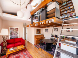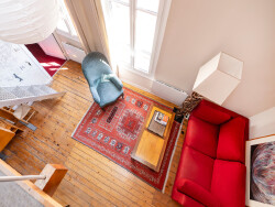 D'une surface pondérée de 49 m² (63,42 m² au sol ? 41,11 m² Carrez), il se compose d'un séjour lumineux de 22 m² exposé plein sud, bénéficiant d'une belle hauteur sous plafond, de poutres apparentes et de deux grandes fenêtres, d'une petite cuisine ouverte, d'une chambre en duplex avec mezzanine, ainsi que d'une seconde mezzanine au-dessus du séjour, aménagée en bureau ou chambre d'appoint. Enfin, une salle de bains avec WC. Une cave et un emplacement vélos dans la cour complètent le bien.