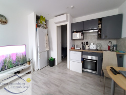 Un salon avec cuisine ouverte, aménagée et équipée Une chambre Une salle d'eau avec WC Climatisation réversible et menuiseries PVC double vitrage