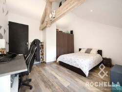 À l'étage, un palier dessert trois chambres, dont une suite parentale avec salle d'eau, WC et dressing. Le bien bénéficie de prestations récentes et confortables : chauffage bois et climatisation réversible, plancher chauffant au rez-de-chaussée, double vitrage PVC/Aluminium, isolation et toiture récentes, VMC simple flux, compteur triphasé, alarme.