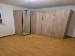 Un couloir desservant trois chambres et une salle de bain.
