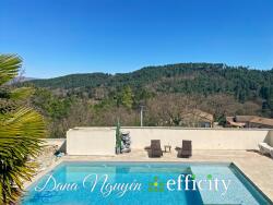 Dana NGUYEN et efficity, l'agence qui estime votre bien en ligne, vous proposent de découvrir cette magnifique villa contemporaine nichée dans un quartier résidentiel de Mercuer situé à 6 km d'Aubenas et à 5 km de la station thermale de Vals les bains. Cette demeure unique saura vous séduire par son emplacement au calme, par son cadre de vie privilégié et sa vue panoramique imprenable.
