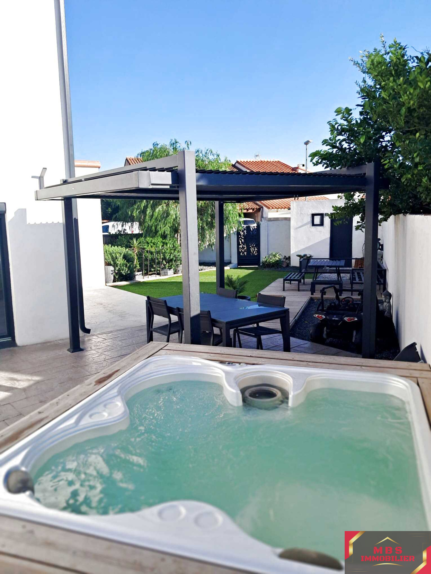 Au coeur de Saint-Laurent de la Salanque, à deux pas de la mairie, du marché et de l'ensemble des commerces accessibles à pied, cette demeure de caractère développe 224 m2 habitables, dans une configuration trois faces rare en centre de village. Volumes, lumière, prestations et qualité de réalisation placent immédiatement ce bien dans une catégorie à part. Dès l'entrée, un vaste sas d'accueil donne le ton. Les espaces sont généreux, les circulations fluides, la rénovation soignée jusque dans les moindres détails. Les matériaux, les teintes claires et la cohérence décorative créent une atmosphère élégante, chaleureuse et résolument haut de gamme. Le rez-de-chaussée, entièrement dédié à la partie jour, s'articule autour d'une grande pièce de vie baignée de lumière. La cuisine, aménagée et équipée, s'organise autour d'un îlot central et s'ouvre naturellement sur les espaces salon et salle à manger. Les nombreuses ouvertures assurent une continuité directe avec l'extérieur, offrant un véritable confort de vie au quotidien. Un toilette indépendant avec lave-mains complète ce niveau. La maison dispose également d'un garage spacieux, permettant le stationnement de deux véhicules, avec des espaces complémentaires pour le rangement ou un atelier. A l'étage, la partie nuit privilégie l'intimité et le confort. Elle se compose de deux suites parentales, chacune avec sa salle d'eau, ainsi que deux chambres supplémentaires. Les volumes sont équilibrés et fonctionnels, et des pièces annexes permettent d'envisager un bureau ou un espace de rangement selon les besoins. A l'extérieur, le jardin, à l'abri des regards, offre une atmosphère confidentielle et conviviale. Murs en pierre typiques de la région, terrasses, cuisine d'été, barbecue et piscine composent un espace idéal pour les moments de détente et de partage. Une entrée latérale indépendante permet un accès pratique, notamment pour les deux roues ou les usages du quotidien. Cette demeure s'adresse à une clientèle en recherche d'un bien rare, alliant caractère, volumes, luminosité et qualité de finition, au coeur d'un village vivant et recherché. Résidence principale de standing, pied-à-terre haut de gamme ou projet professionnel, ce lieu offre plusieurs lectures, toujours avec élégance et cohérence. Votre Conseiller Immobilier local Thierry 06 14 13 37 92